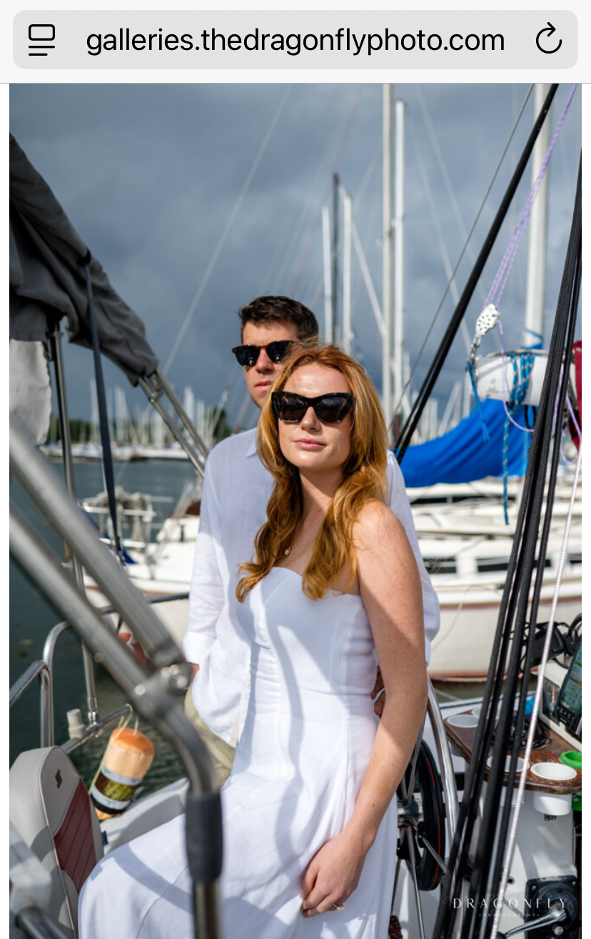 Sailboat deck with fruit basket, Verktadue Cleveland engagement photo shoot boat rental